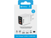 Su „Sandberg 2in1 Charger 1xUSB-C 1xUSB 35W“ turėsite nedidelį, bet galingą įkroviklį savo išmaniajam telefonui, planšetiniam kompiuteriui ar kitam įrenginiui su USB-A arba USB-C prievadu, galintį sparčiai įkrauti įrenginius. Patogus ekranas rodo tikrąją galią. Galima įkrauti du įrenginius vienu metu.