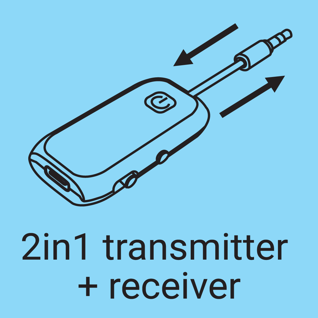 Sandberg BT Audio Link 2in1 TxRx leidžia siųsti ir priimti garso signalą belaidžiu būdu per Bluetooth. Suaktyvinus kaip siųstuvą (Tx), galite gauti garso signalą iš ausinių išvesties, pavyzdžiui, jūsų televizoriuje, prijungtame prie Bluetooth ausinių. Suaktyvinus kaip imtuvą (Rx), galite prijungti Bluetooth įrenginį, pavyzdžiui, mobilųjį telefoną, per AUX jungtį, pavyzdžiui, jūsų automobilio garso sistemoje, kad galėtumėte mėgautis belaidžia muzika iš savo mobiliojo telefono per automobilio garso sistemą.